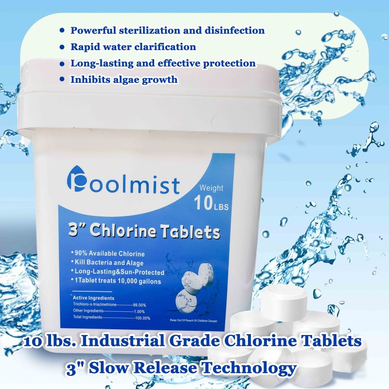 10LB Chlorine Tablets 3 Inch - Stabilized Pool Sanitizer for Long Lasting Algae Control & Crystal Clear Water, Weekly Maintenance (Economy Size)